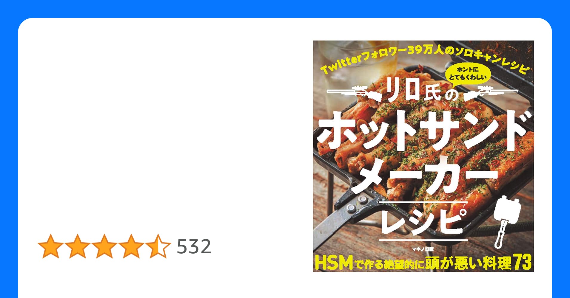 また頭の悪い料理が爆誕! なんでもホットサンドメーカーにぶち込んで焼くだけ! Twitterのフォロワー39万人超え「リロ氏」によるとてもくわしいHSM(ホットサンドメーカー)料理が登場! “平成生まれソロハンター"のソロキャンレシピを大公...